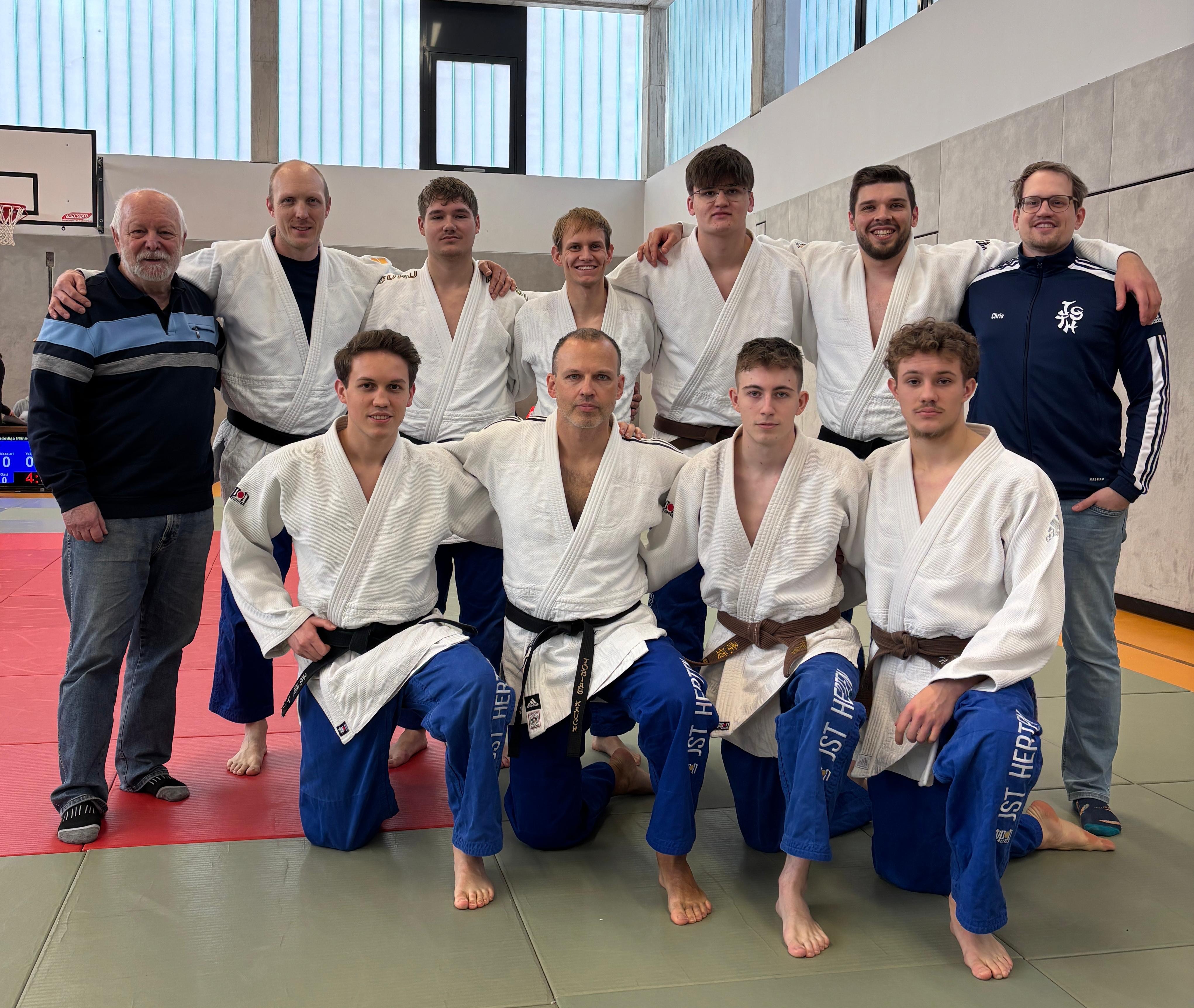 In der Begegnung gegen den PSV Münster gingen in der Hinrunde erneut Tobias Kauch (-81kg) und Malte Berghaus (-90kg) auf die Matte und holten zwei sichere Punkte. Tom Schroers (+90kg), der sich in seinem ersten Jahr bei der Männermannschaft befindet, setzte sich ebenfalls durch und siegte nach nur 30 Sekunden Kampfzeit zum ersten Mal für das Judo-Sport-Team. Lukas Raddatz (-66kg) fügte einen weiteren Sieg hinzu. Nur Niklas Lichtblau (-73kg) musste sich geschlagen geben. Halbzeitstand 4:1 für Herten.