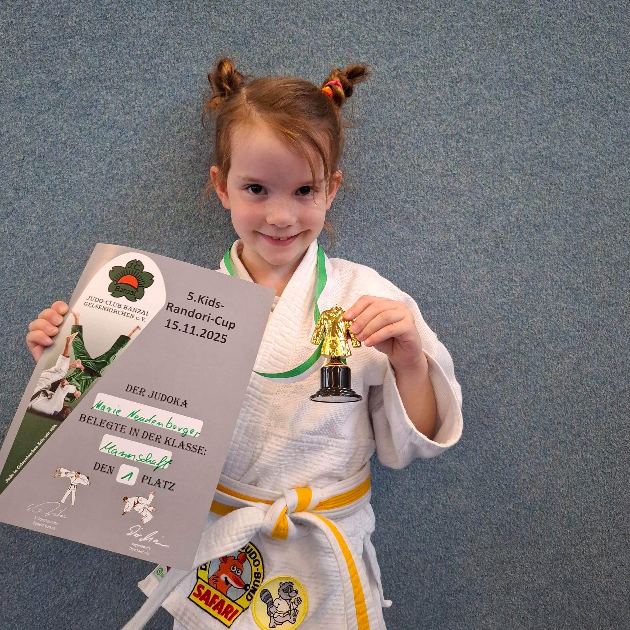 Am 15. November startete Marie Neudenberger beim Kids-Randori in Gelsenkirchen und zeigte eine starke Leistung. Zunächst standen die Spiele Zielwerfen, Wettrobben und Gürtelklau auf dem Programm, bei denen sie gemeinsam mit ihrem Team großen Einsatz zeigte. In der ersten Runde trat sie gleich zwei Mal an, da ihrer Mannschaft ein Judoka in der höheren Gewichtsklasse fehlte.