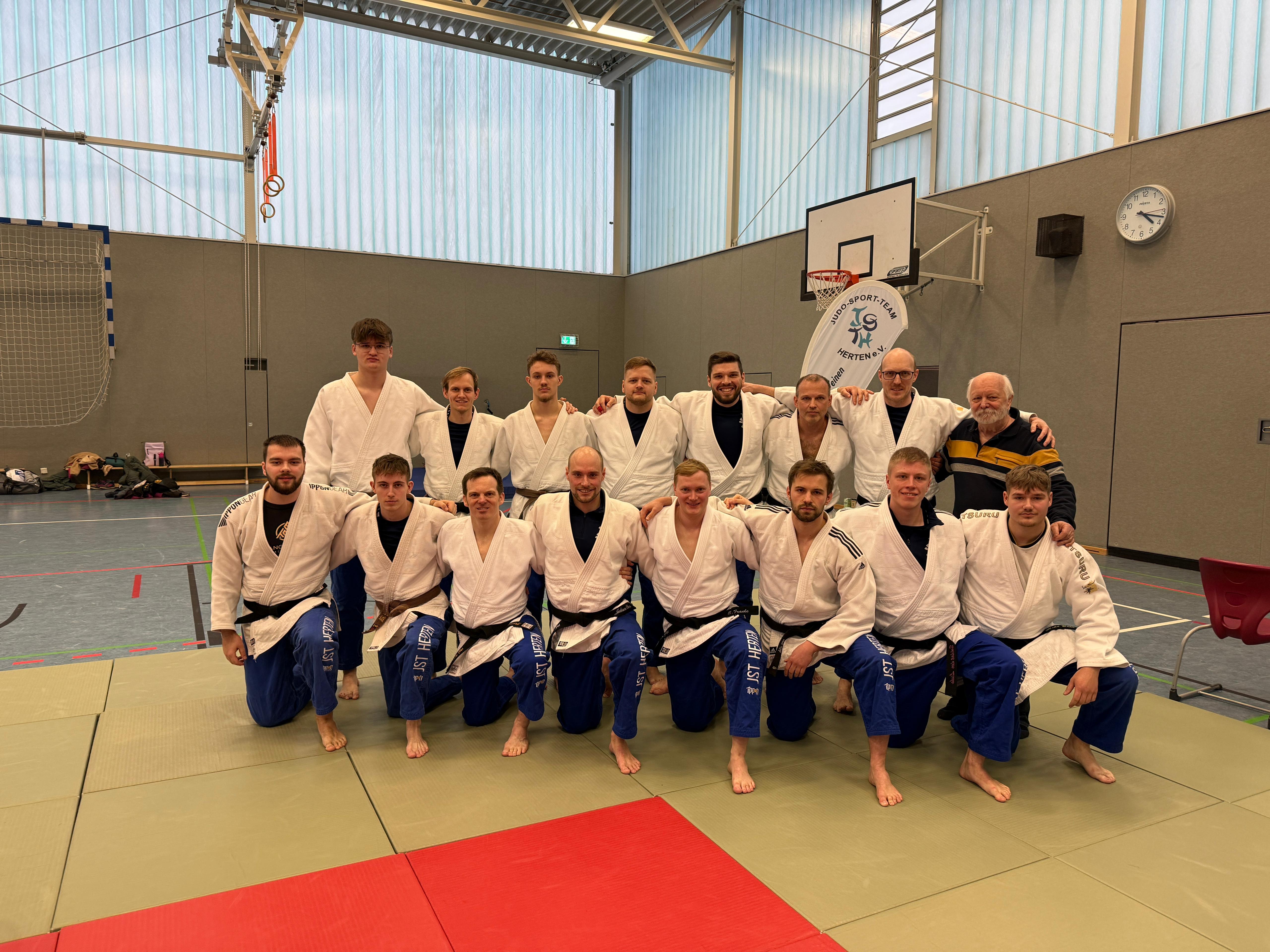 Am 22.11.25 empfing unsere Männermannschaft den JC Velen-Reken und die JG Ibbenbüren II zum vierten und letzten Kampftag in der Landesliga Münster. Der JC Banzai Gelsenkirchen II und die PSV Münster trugen ihre letzte Begegnung ebenfalls in unserer Halle aus. Da das JST Herten bisher ungeschlagen in der Liga ist war das klare Ziel Platz 1 zu halten.