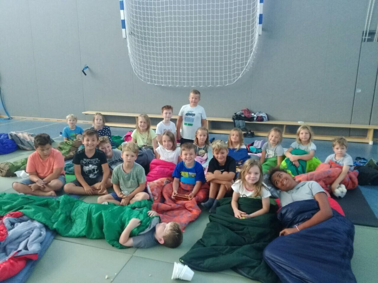 Beim gemeinsamen Abendessen wurde heiß über die diesjährigen Filme spekuliert. Danach gestalteten Kinder und Trainer ihren individuellen Schlafplatz und machten es sich gemütlich. Wer bis jetzt noch nicht satt wurde, hatte hier die Möglichkeit, sich mit Gummitieren, Chips und natürlich Popcorn voll zu futtern. Auch für den Gruselfaktor war gesorgt, als es am späten Abend plötzlich an der Tür klopfte.