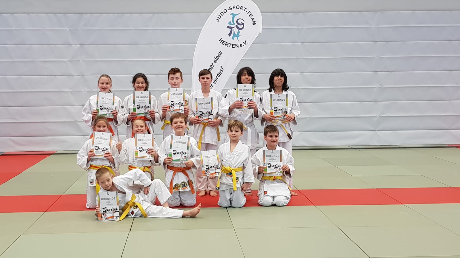 Am 17. November fand einen Tag nach der Dan-Prüfung die Kyu-Prüfung für die Kleinen des JST statt. Die gezeigten Leistungen überzeugten die Prüfer Sira Neuhaus und Julius Feldmann.