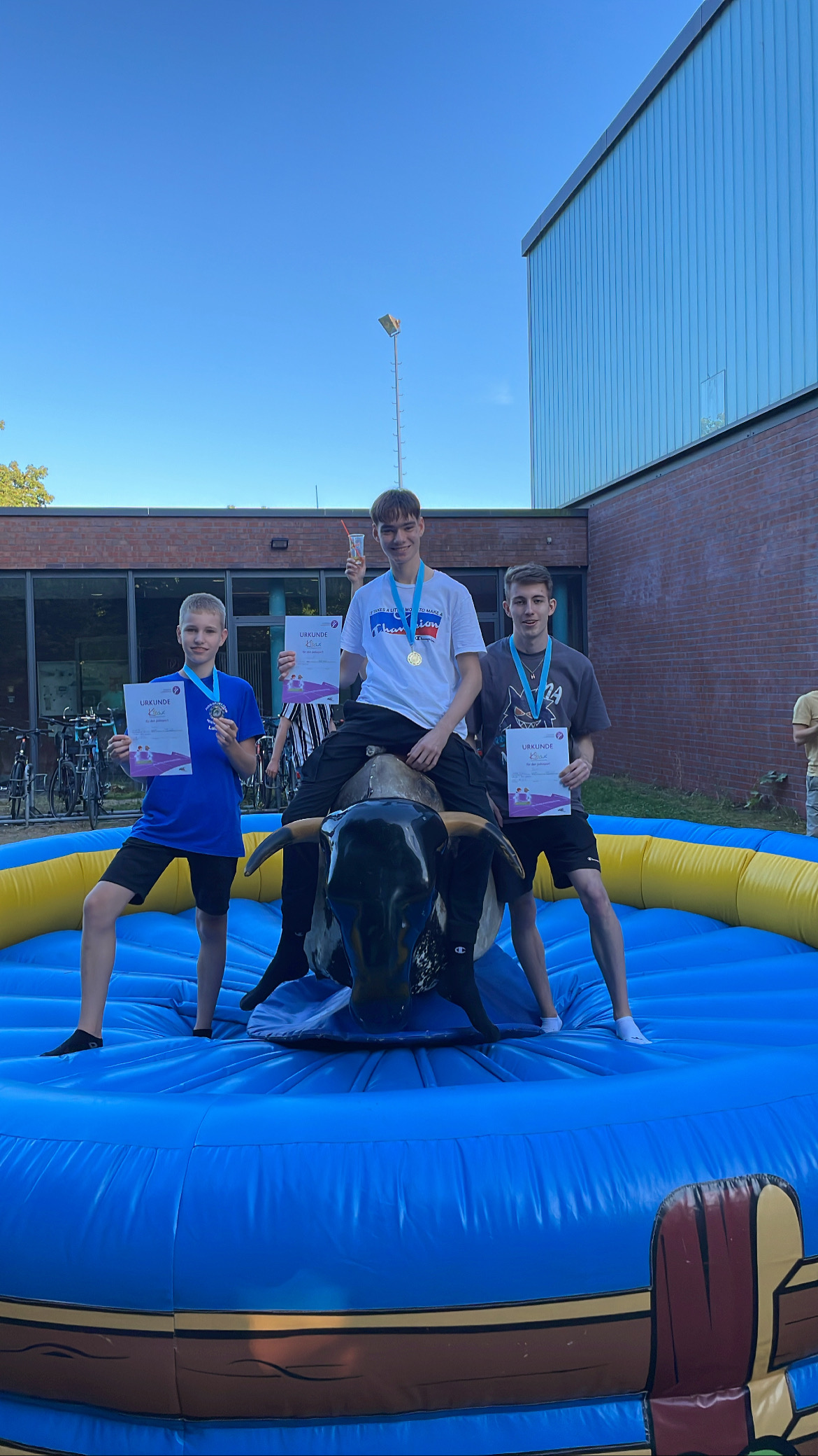 Judo-KIBAZ, Eltern-Kind-Judo, Hüpfburg, Foto-Wettbewerb mit Siegerprämien, Spiel & Spaß, sowie Bullenreiten hießen nur einige der Highlights, die am vergangenen Sonntag angeboten wurden und bei allen Anwesenden für Begeisterung sorgten. Verpflegt wurden die Mitglieder und Gäste mit Kaffee, Kuchen, Slush-Eis, Kaltgetränken, Burgern und weiterem Grillgut, sowie dem Cocktailtaxi, das am Abend vor der Halle einkehrte.