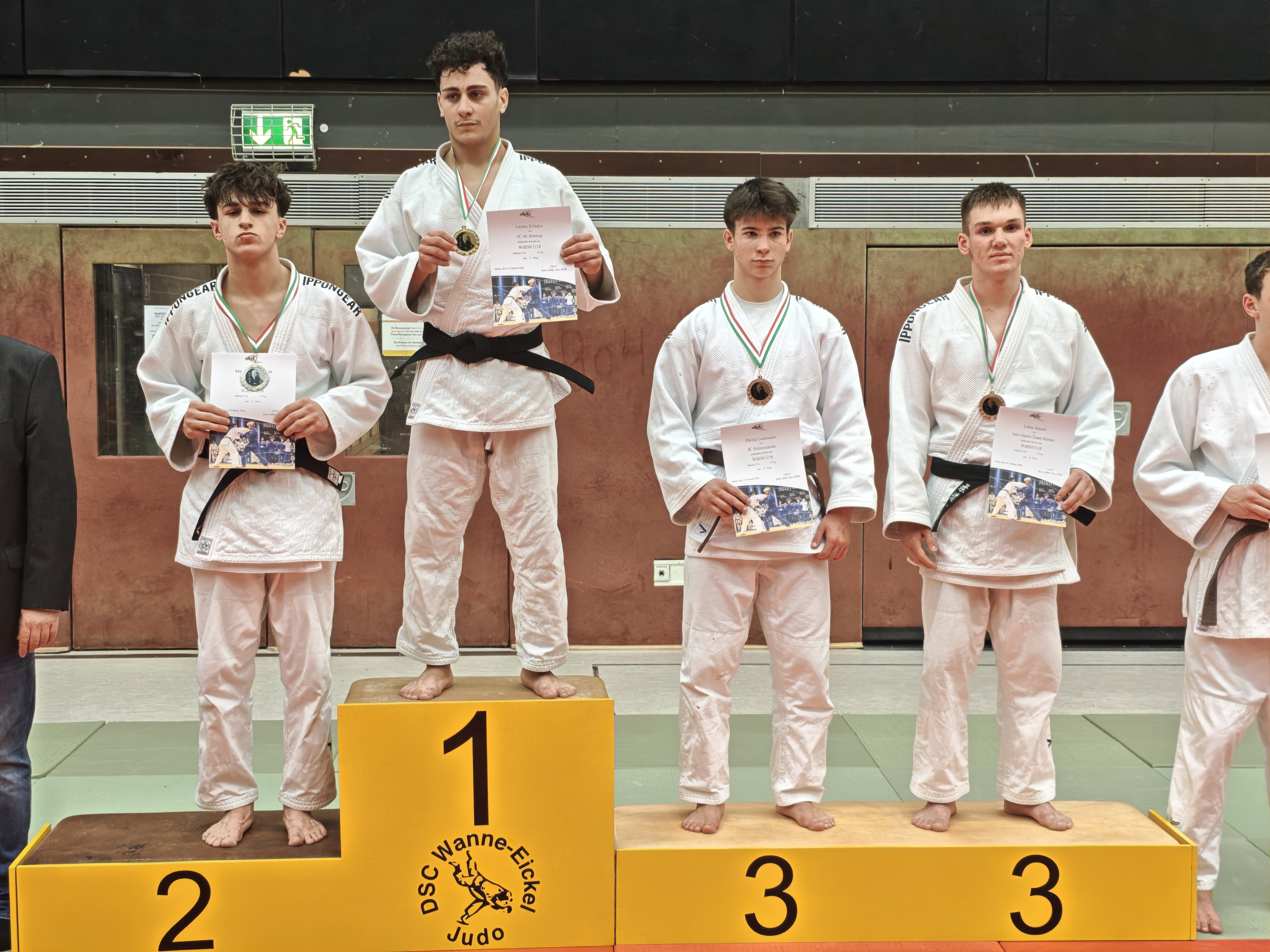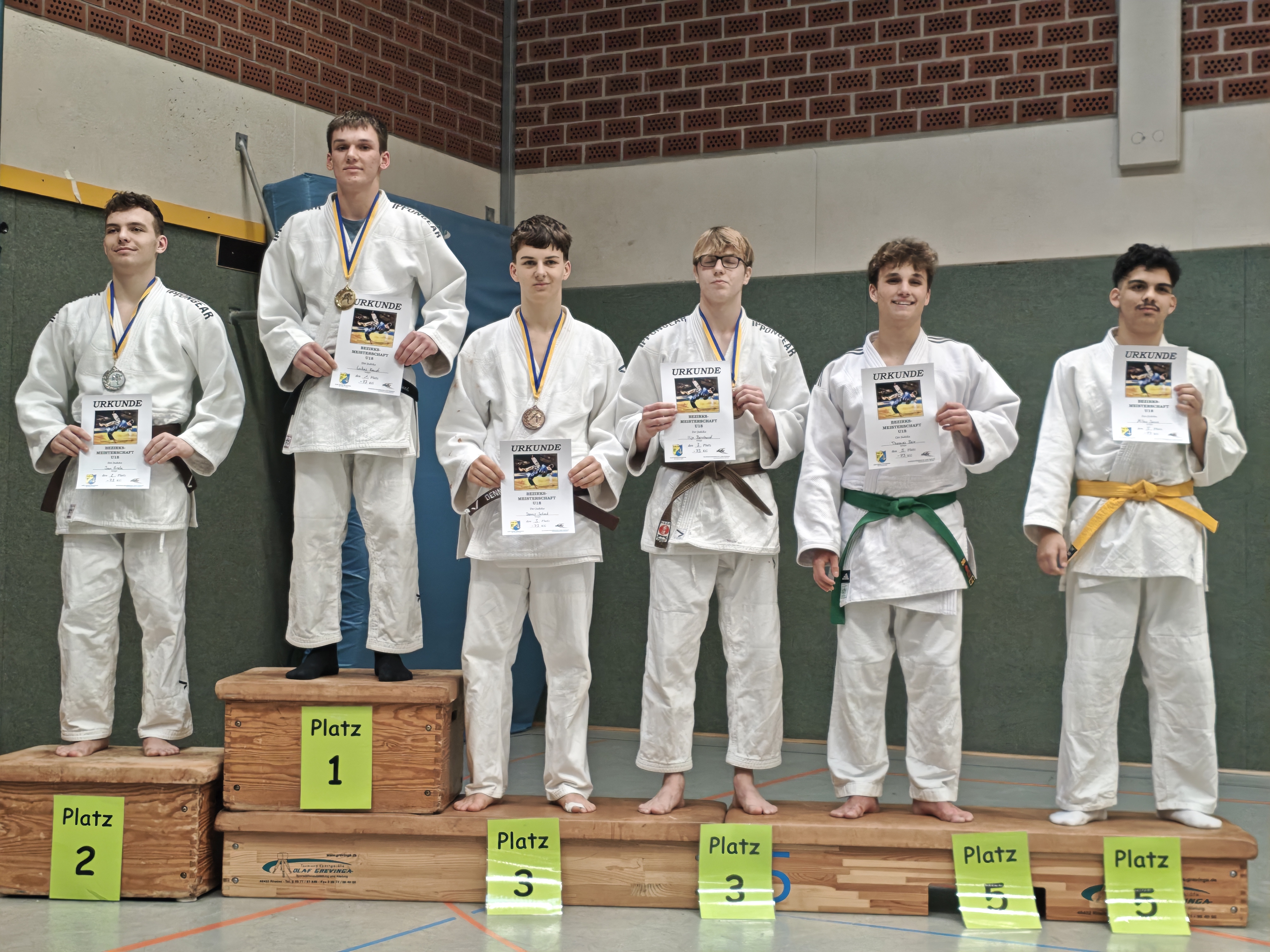 Als letzte Gruppe trat die U18 an diesem Tag an. Hier trat Justus Koch in seiner neuen Gewichtsklasse bis 66 kg an. Die Kämpfe führte er im Stand stark, aber durch Unachtsamkeiten im Bodenkampf musste er bei Würgetechniken jeweils aufgeben. Sein erstes Turnier überhaupt kämpfte Milan Savic in der Klasse bis 73 kg. Mit erst wenigen Monaten Judoerfahrung und einem gelben Gürtel, aber schon anderer Kampfsporterfahrung, gelang es ihm, seine erste Begegnung gegen einen Orange-Grün-Gurt durch Armhebel im Boden zu gewinnen. Im anschließenden Halbfinale musste er gegen einen auch auf nationaler Ebene schon erfahrenen Braungurt aus Bottrop antreten. Hier machte sich der Erfahrungsunterschied deutlich bemerkbar und Milan verlor den Kampf. Auch im Kampf um Platz 3 hatte er gegen einen erfahreneren Judoka das nachsehen, so dass Platz 5 blieb. Dies ist ein sehr guter Erfolg für das erste Turnier als Judoka.