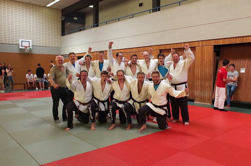 Auch gegen Iserlohn musste die Gewichtsklasse -66kg abgegeben werden. Nach einem Ippon-Sieg durch Nils Theißen wurde allerdings wieder ausgeglichen. Einen starken Gegner erwischte Julius Feldmann in der Gewichtsklasse -73kg und musste sich nach der Kampfzeit in der Unterbewertung knapp gegen Janosch Schroeder geschlagen geben. Sebastian Stawowy und Christoph Linde konnten ihre Gegner bezwingen, sodass nach den ersten 5 Kämpfen ein 3:2 für das Team aus Herten verzeichnet werden konnte. In der zweiten Runde konnte Nils Theißen seinen Gegner erneut besiegen, auch wenn dieser nun vorsichtiger agierte und der Kampf in der Folge über die gesamte Zeit ging. In der Gewichtsklasse -73kg kämpfte diesmal Tobias Kauch gegen Janosch Schroeder und schaffte es als Sieger von der Matte zu gehen, nachdem er insbesondere in der letzten Minute der Kampfzeit noch einmal alle seine Kräfte aufbrachte. Timo Schulz lieferte im Anschluss sicherlich einen der spannendsten Kämpfe des Tages. Unter Anfeuerung seiner Mannschaftskollegen und mit einem erkennbaren Siegeswillen konnte er – trotz eines Rückstandes – den Kampf in der Unterbewertung nach 4 Minuten für sich entscheiden. Zum Abschluss gelang es Christoph Linde, der als einziger 4 Kämpfe an diesem Tag bestreiten musste, erneut zu gewinnen. Folgerichtig stand wieder ein 7:3 für Herten auf der Ergebnistafel.